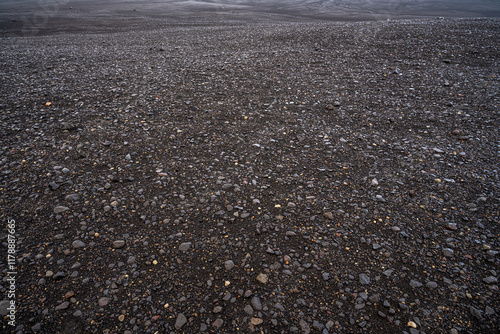 Closeup view of black sand beach on Sólheimasandur or Solheimasandur, Iceland
