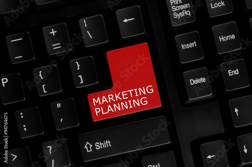 Close-up view of computer keyboard with Marketing Planning words on keyboard button.