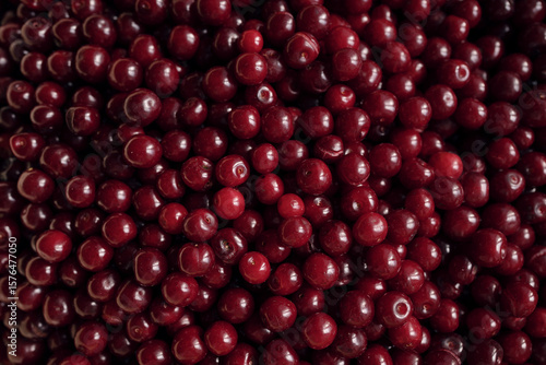 Close-up view of fresh ripe sour cherries creating a textured fruit background.