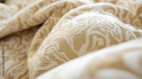 Close-up view of luxurious cream-colored textile with intricate pattern.