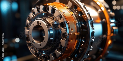 Close-up view of machine gears on display, suitable for technology or industrial use
