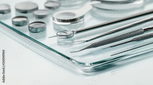 Close-up View of Precision Dental Tools on a Clean Glass Surface