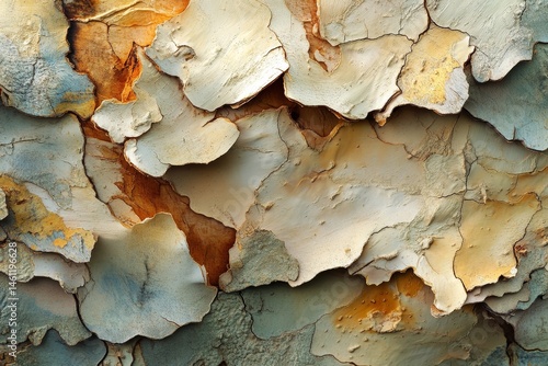 Close-up view of textured bark surface with peeling layers.