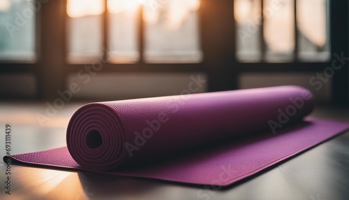 Closeup view of yoga mat and woman on background