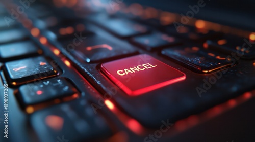 Close-up view on conceptual notebook keyboard - cancel red key button.