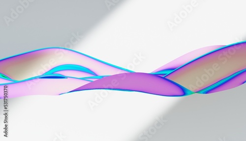 Cloth fabric gradient waves abstract background. Iridescent glass wavy surface. Liquid surface, ripples, reflections. 3d render illustration