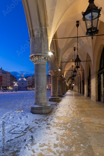 Cloth Hall (Sukiennice) arcades, main square, Krakow, Poland