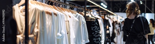Clothes on hangers in a store.