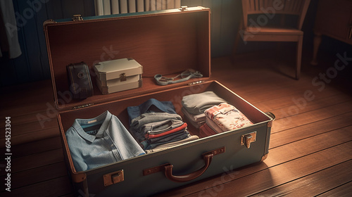 Clothes on suitcase. Generative Ai