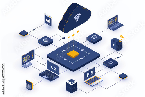 Cloud Computing - Graphic, Isometric, Business, Technology, Vector, Isolated, 3D, White Background
