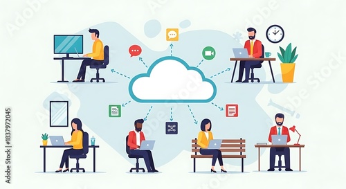 Cloud Computing Network with Diverse Professionals Working Remotely.