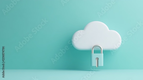 Cloud Storage Security Concept with Padlock on Turquoise Background for Data Protection and Privacy Themes