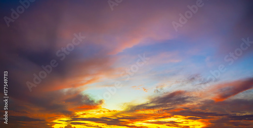 Clouds and sky backdrop at sunrise and sunset,Sunrise background. Dramatic majestic scenery sunset. Sky with clouds in Sunrise sky light background. Sunrise with clouds in various shapes.