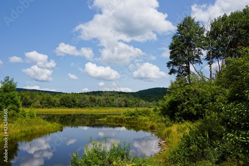 Clouds reflected in a lake in the Catskill Mountains in Upstate New York
