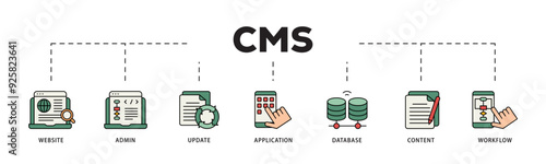 CMS icon infographic illustration concept with icon of workflow, application, content, database, update, admin, website icon live stroke and easy to edit
