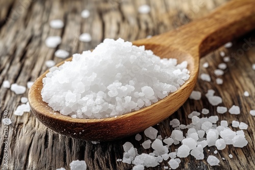 coarse sea salt wooden spoon