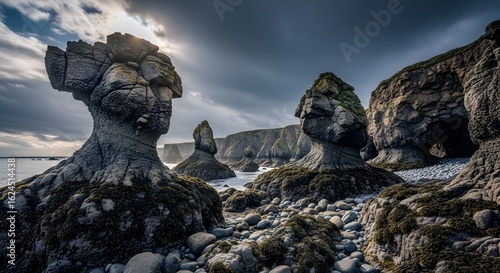 Coastal Rock Formations Under Dramatic Skies A Scenic View