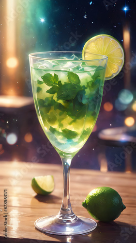 cocktail with lime and mint AI Generative.