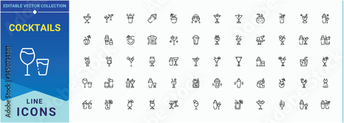 Cocktails icon set. Includes thin line symbols martini, beer, drink, whiskey, alcohol, beverage, wine and more. Whiskey icon. Minimal icons collection. Editable vector stroke.
