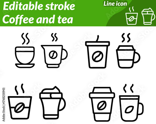 Coffee and tea set icon. Colors blend rich browns soft creams and earthy greens representing both beverages.Optional details include saucer sugar cube spoon enhancing the cafe theme Styled in modern.