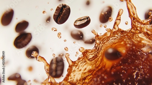 Coffee beans splashing, white background