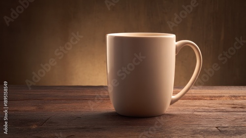 Coffee mug on a dark wooden table in warm morning light. bar promotions, beverage menus, designed for product packaging and bar promotions, enhances appetite appeal.