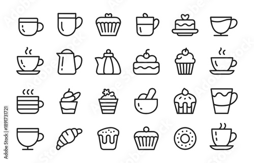 Coffee Tea and Bakery Line Icon Set Minimal Outline Vector Illustration