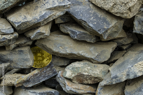 Coin bitcoin sandwiched stones. Mining bitcoins.