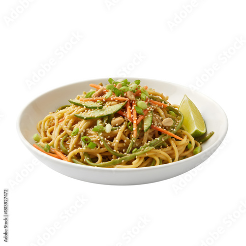 Cold Sesame Noodles Salad with Peanut Sauce and Vegetables isolated on a transparent background
