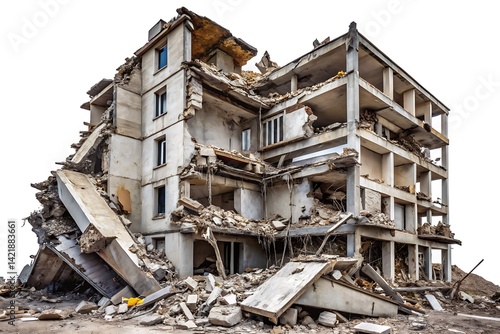 Collapsed Concrete Building, Ruined Architecture, PostApocalyptic Construction Site