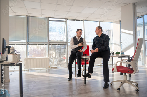 Colleagues drinking coffee in the office.
