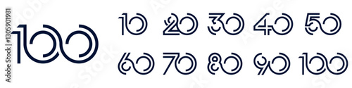 collection anniversary 10 to 100 year logo designs. abstract number for celebration event, wedding, greeting card, and invitation, vector illustration