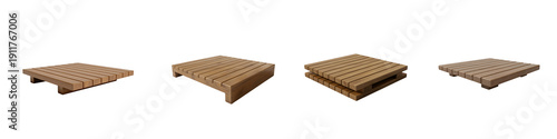 Collection for Four brown pallets in a row on white isolated on transparent background