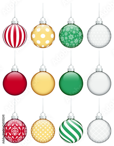 Collection Of 12 Christmas Balls Traditonal
