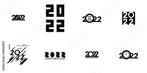 Collection of 2022 Happy New Year signs. Greeting card artwork, brochure template. Big Set logo text design. Vector on isolated white background. Year of the Tiger 2022. Vector illustration.