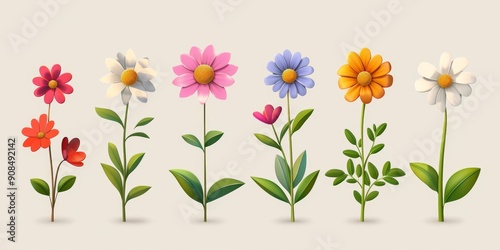 Collection of 2D and 3D Vector Flat Abstract Minimalistic Art of Flowers and Meadow Isolated on a White Background
