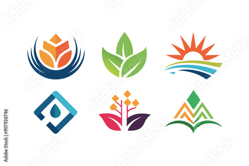 Collection of Abstract Colorful Logos with Nature-Inspired Elements