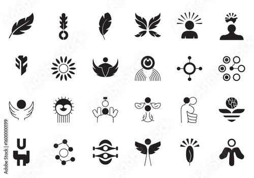 Collection of Black and White Abstract Minimalist Vector Icons and Logo Design Elements Perfect for Creative Projects