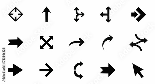 Collection of black arrow icons and symbols on white background