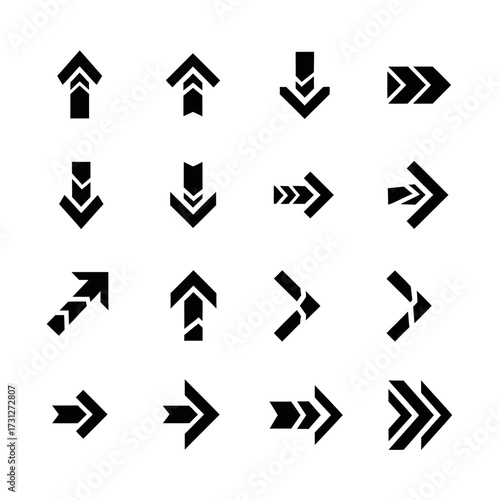 Collection of Black Arrow Symbols Pointing in Various Directions
