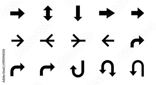 Collection of Black Arrows Icons and Symbols on White Background
