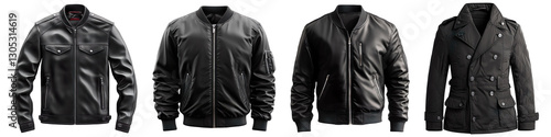 Collection of black Jackets isolated on transparent background