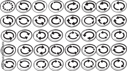 Collection of circular arrows with a grunge texture in a grid pattern