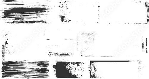 Collection of dark grey distressed grunge textures and borders on white background scratch rough