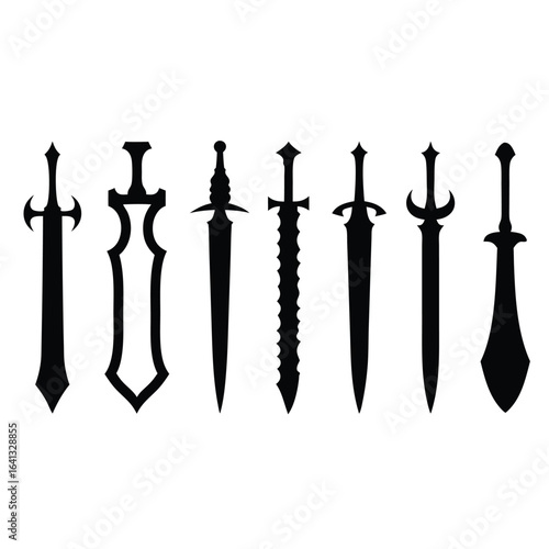 Collection of diverse sword silhouettes on white background 2