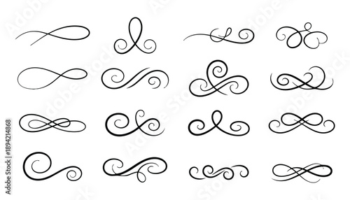 Collection of Elegant Black Calligraphy Flourishes and Swirls