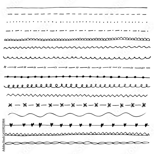 Collection of hand drawn line borders, Set of floral ornaments .