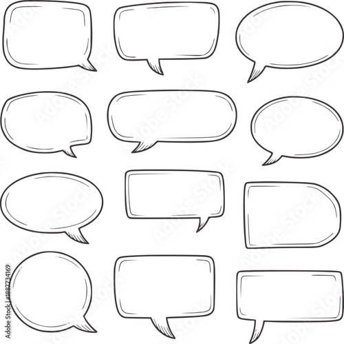 Collection of hand drawn speech bubbles in various shapes and sizes talk communication