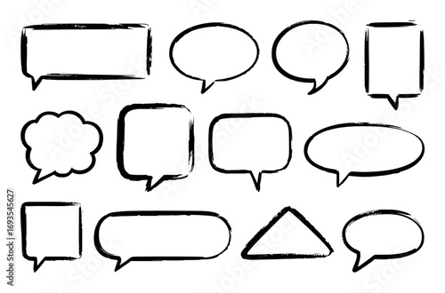 Collection of Hand-Drawn Speech Bubbles in Various Shapes and Styles