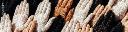 Collection of Knitted Gloves in Beige, Off-White, and Dark Brown